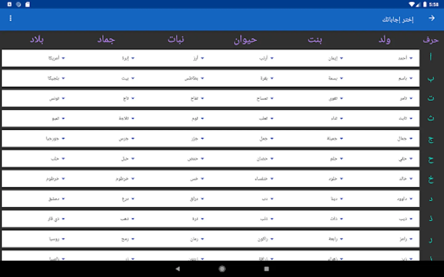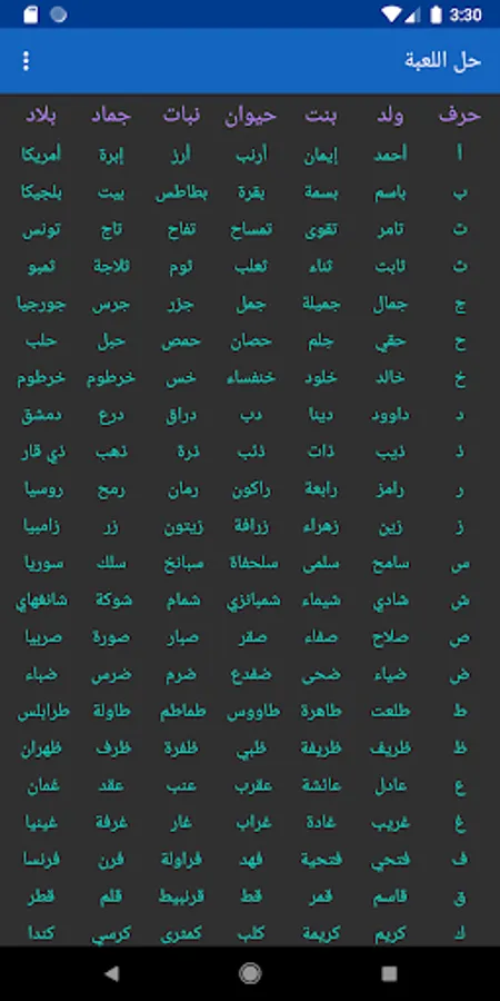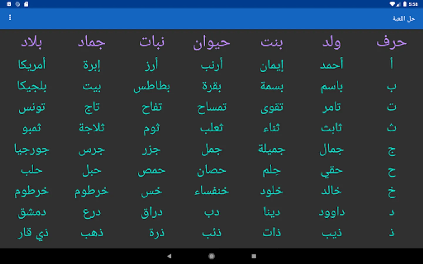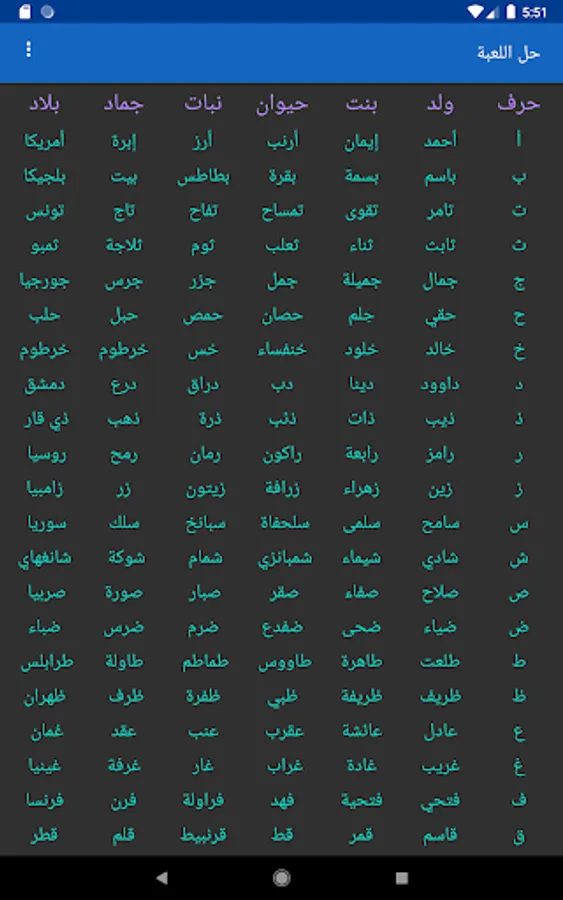 And all possible solutions for each letter as the application provides all possible options for each letter