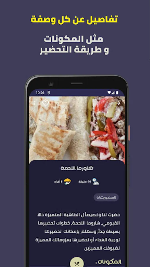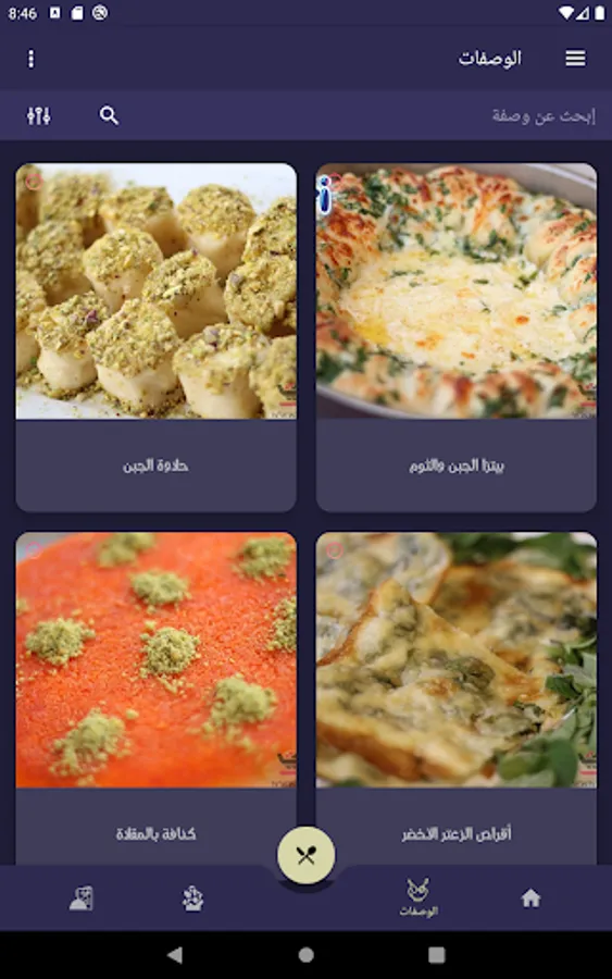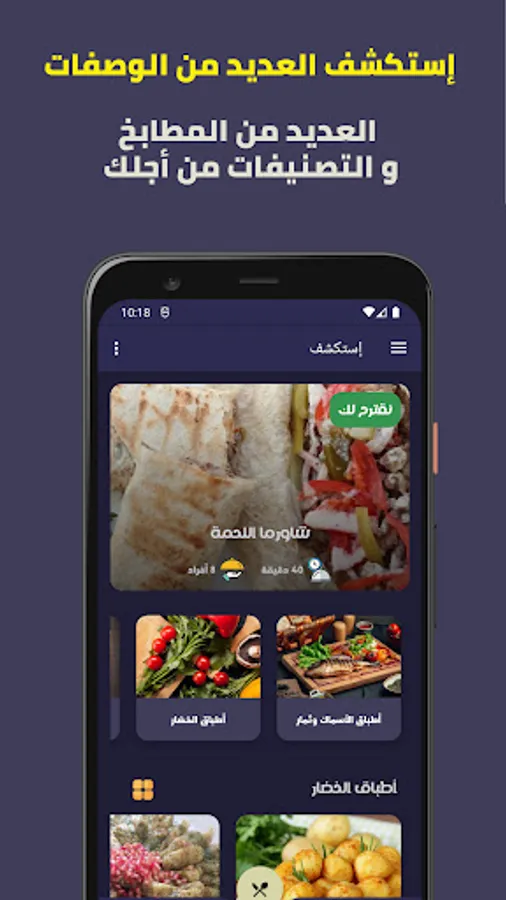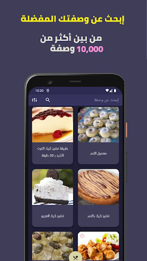 Enjoy more than 10,000 diverse recipes from all kitchens and in various types, from meat eaters to sweets, Egyptian and Levantine cooking recipes, and many more.