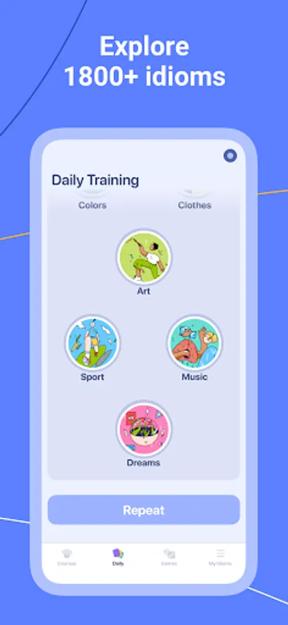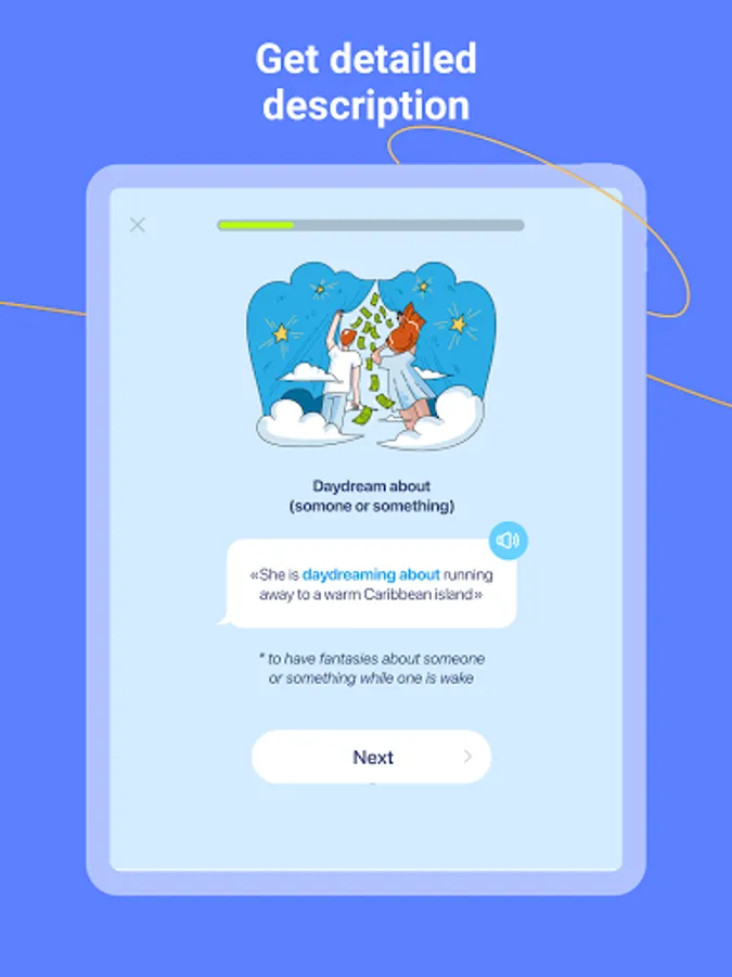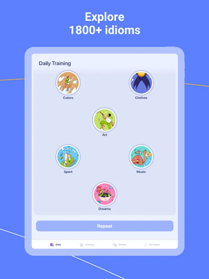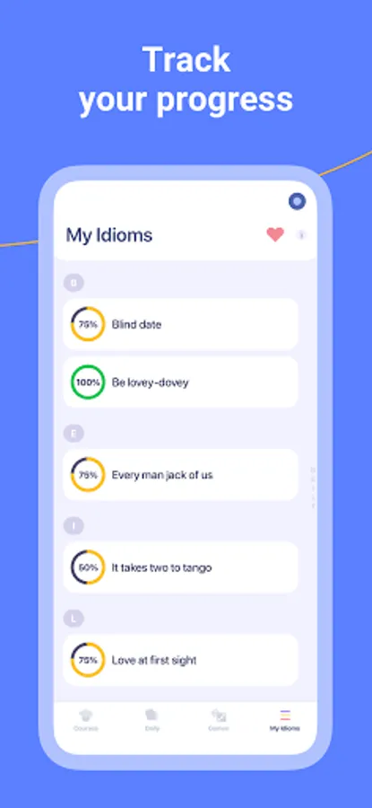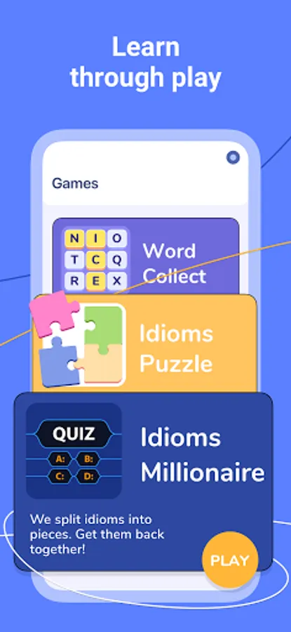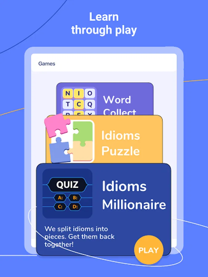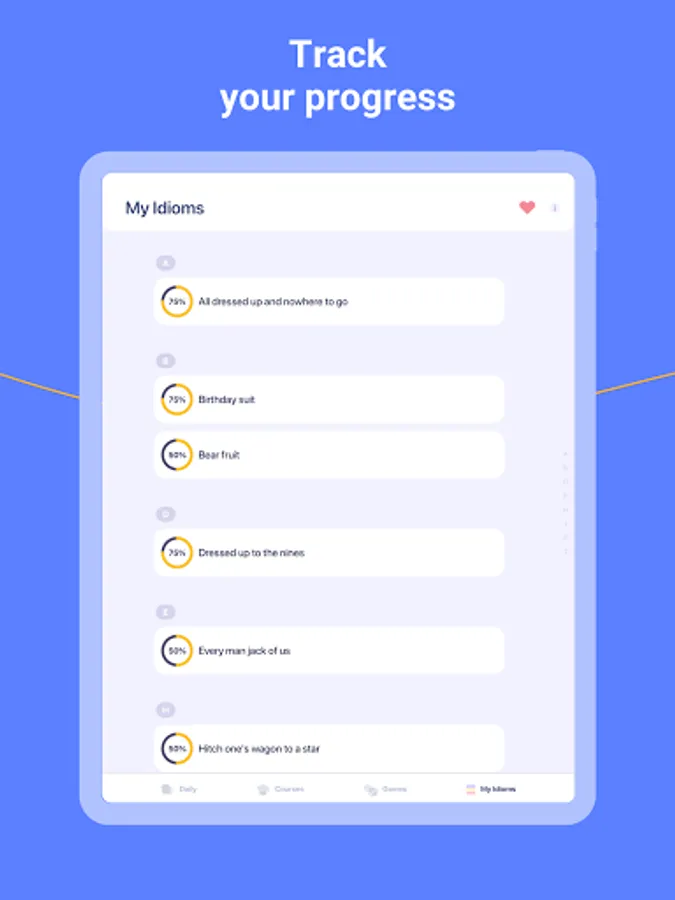 Study idioms, memorize while playing, track your progress, and become a top-notch in idioms' juggling!
