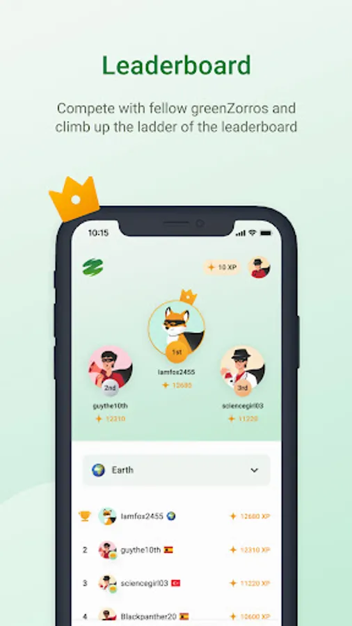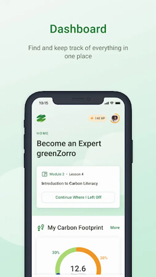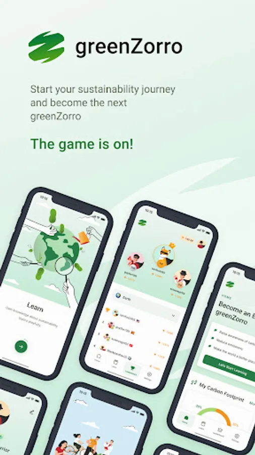 Have fun learning about Sustainability, join friendly competition with friends, family and colleagues, and earn points to exchange to tangible rewards inside greenZorro app, while we help you tally and reduce your personal environmental footprint with our key features: