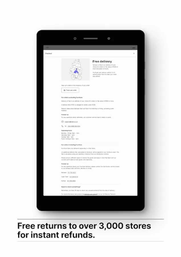 Free returns (excluding furniture) to 3,000+ TFG stores, or we can arrange a courier collection from your preferred address.
