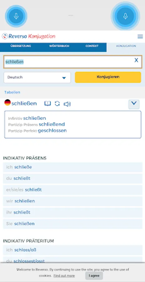 In addition, the application also supports your pronunciation of any verb and will display the verb's verb with personal pronouns.