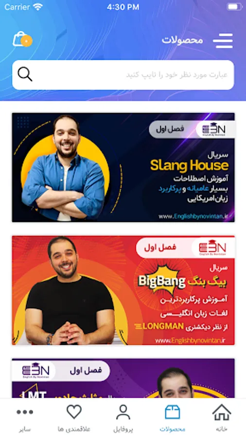 The EBN application belongs to the Novin Tan Training Group. This attractive and practical program is designed to teach foreign languages. The collection is currently being taught in English and will be added to other languages, including Turkish, Italian, French, German, Spanish, and more.