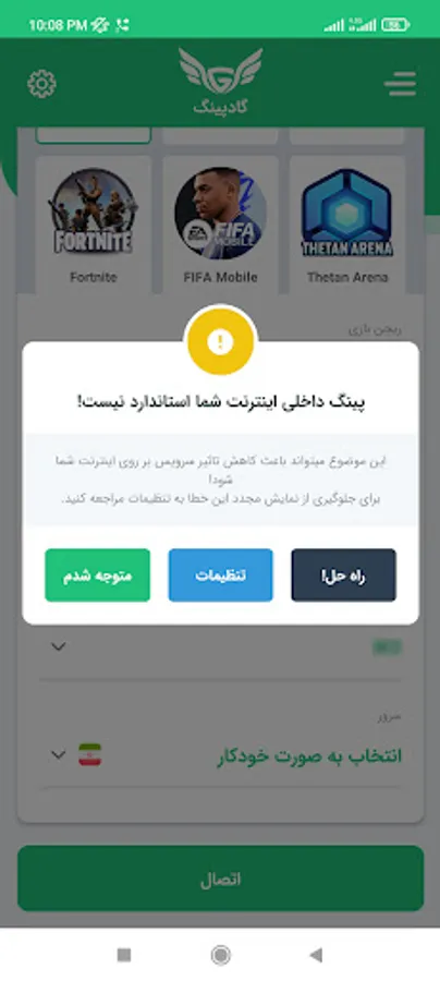 GodPing: a completely reliable, safe and legal service for Persian-speaking gamers who face problems such as (high ping, lack of register fire, packet loss, lag, etc.) in online games.