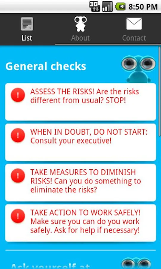 In this version you only have the ´general risk analysis´ available. There is also an lmra app for a number of specific branches. Download price only € 0.79