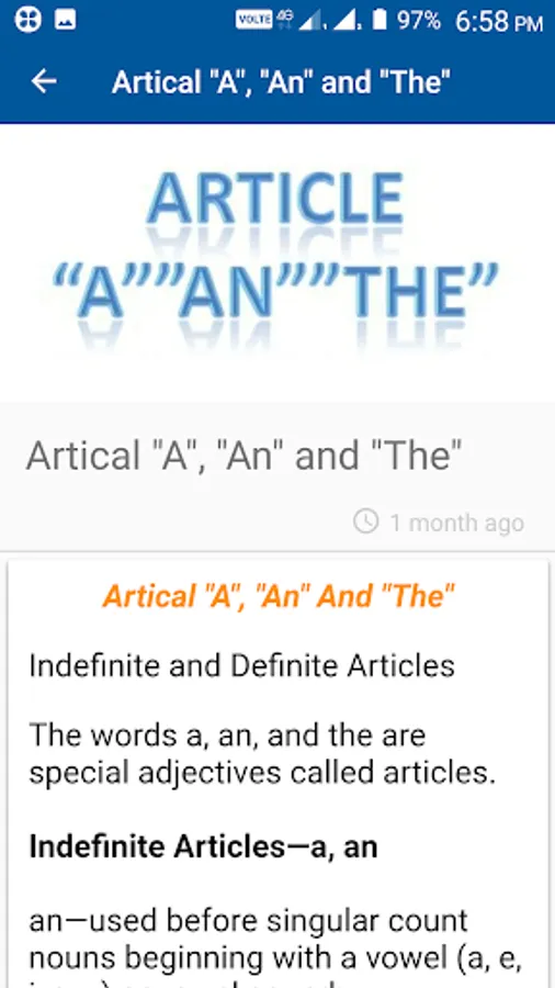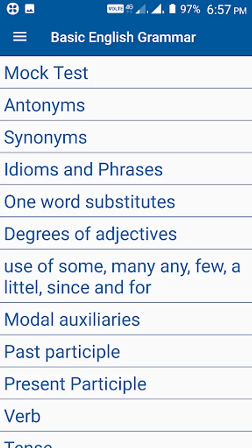 This app for English grammar is not a basic English grammar book this app contains basic English grammar exercises, English Grammar videos , Learning Mode and English Grammar Test Mode.