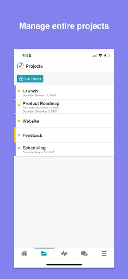 Projects - create and view projects - assign tasks, add comments, upload files, and manage your team.