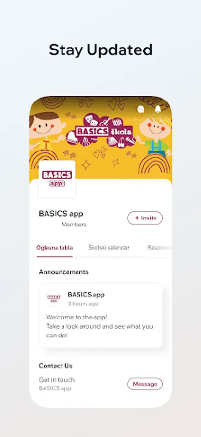 Aplikacija je namijenjena učenicima/cama Muzičko - obrazovnog sistema "Basics škola" i njihovim roditeljima. Za korištenje aplikacije potrebno je imati otvoren nalog koji verifikuje administracija škole.