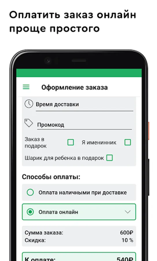 ◽ Ability to pay for the order online from a card of any bank