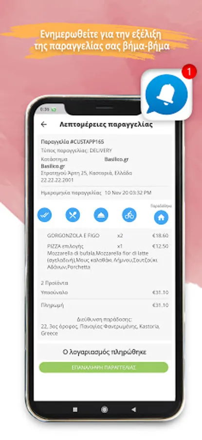 • Monitor the progress of your order step by step (Push Notification)