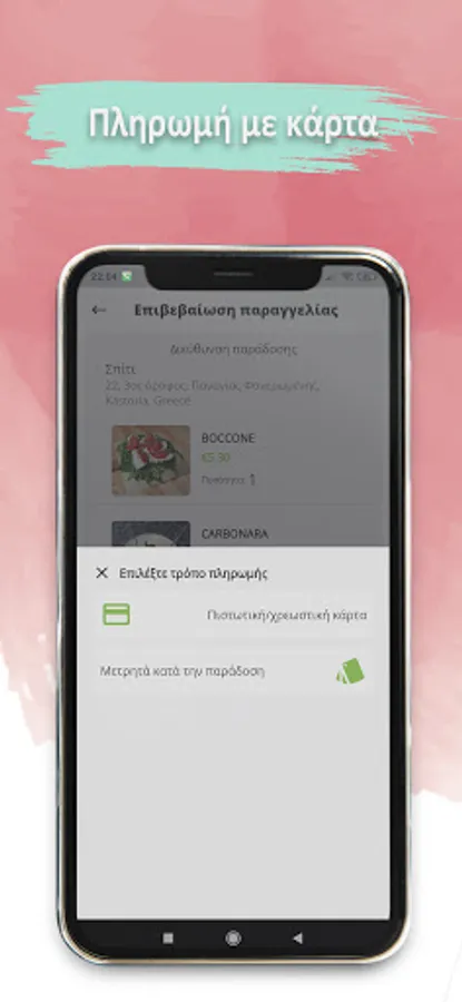 • Choose payment method - cash or card