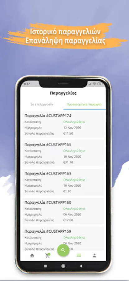 • Order history and repeat order