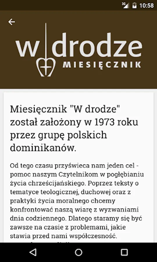 The application prepared by the Dominicans with editors of the monthly "On the Road", helpful in preparing for the sacrament of confession. It contains four texts by: