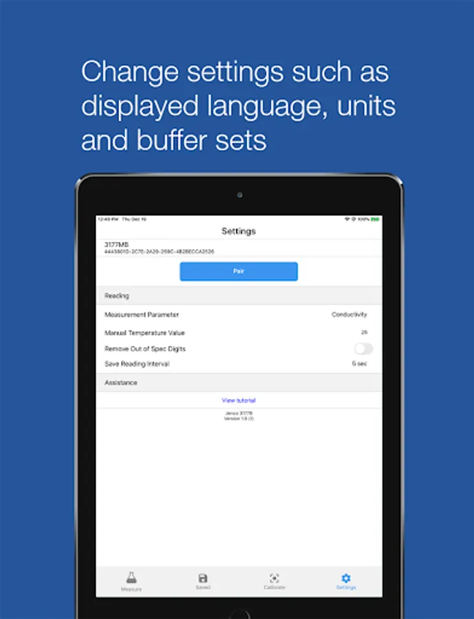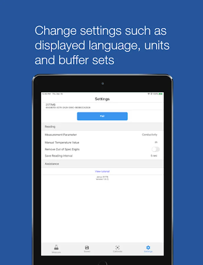 Our 5th generation benchtop series consists of single and multi-parameter models, with or without Bluetooth connectivity. The 3177MB is a multi-parameter Conductivity / Salinity / TDS / Temperature Bluetooth benchtop meter that pairs with iOS tablet to enable the same user experience as users’ favorite apps while providing graphing, guided calibration procedures, GLP-compliant data storage, data sharing, cloud data storage and user-defined compliance policies.