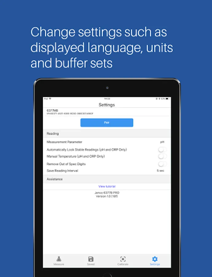 Our 5th generation benchtop series consists of single and multi-parameter models, with or without Bluetooth connectivity. The 6377MB / 6377BEU is a multi-parameter pH / ORP / Conductivity / Salinity / TDS / Temperature Bluetooth benchtop meter that pairs with iOS tablet to enable the same user experience as users’ favorite apps while providing graphing, guided calibration procedures, GLP-compliant data storage, data sharing, cloud data storage and user-defined compliance policies.