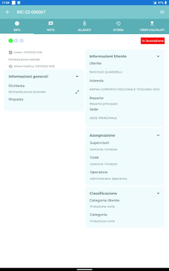 Through the ANPAS Sportello app, it is possible to access the Xperience platform using an interface designed to optimize the mobile experience and simplify the interventions of the operators.