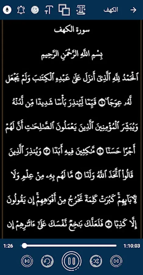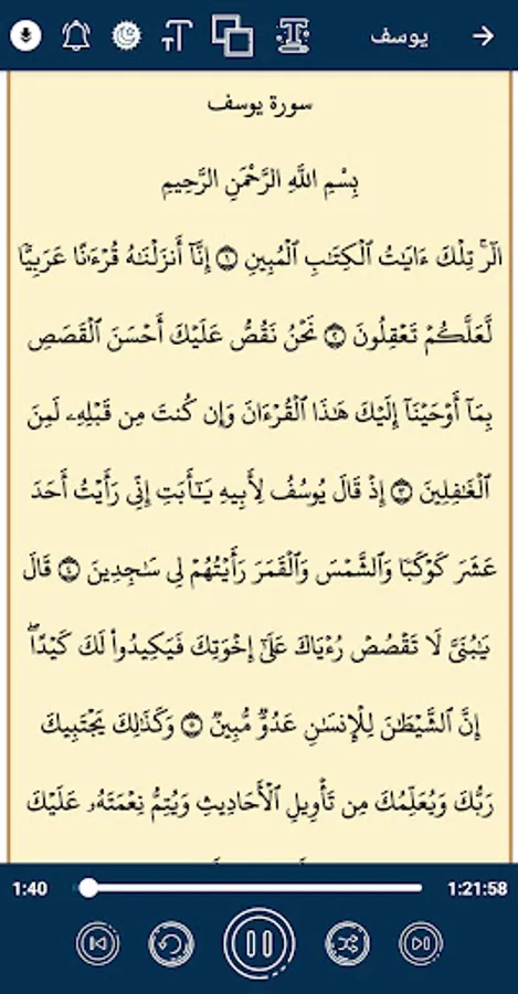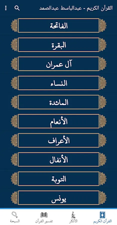 As we mentioned, the interface of the Noble Qur’an application, the voice and image of Abdul Basit Abdul Samad, is a simple interface that enables users, young or old, to listen to the Noble Qur’an and use the application with ease, away from complexity.