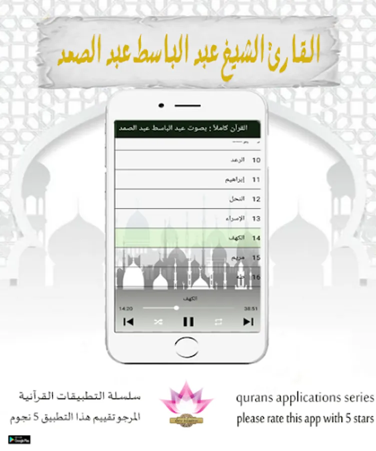 Now after downloading, you can share it with your friends on various social media so that they can benefit from the program `` The entire Qur’an: With the voice of Abdul Basit Abdul Samad '' and enjoy its features, the most important of which is that it is a simple free application that fits with all Android phones, taking a simple space from the device inside it.