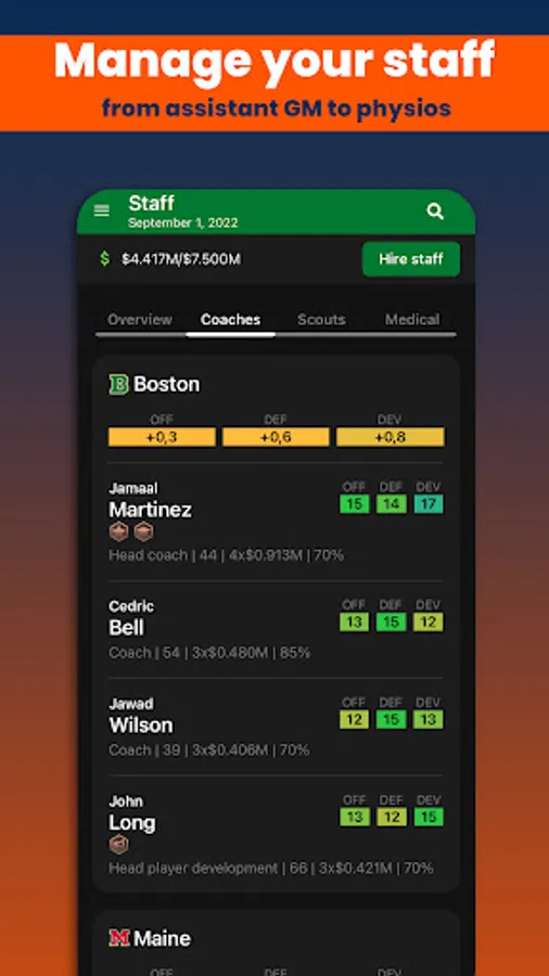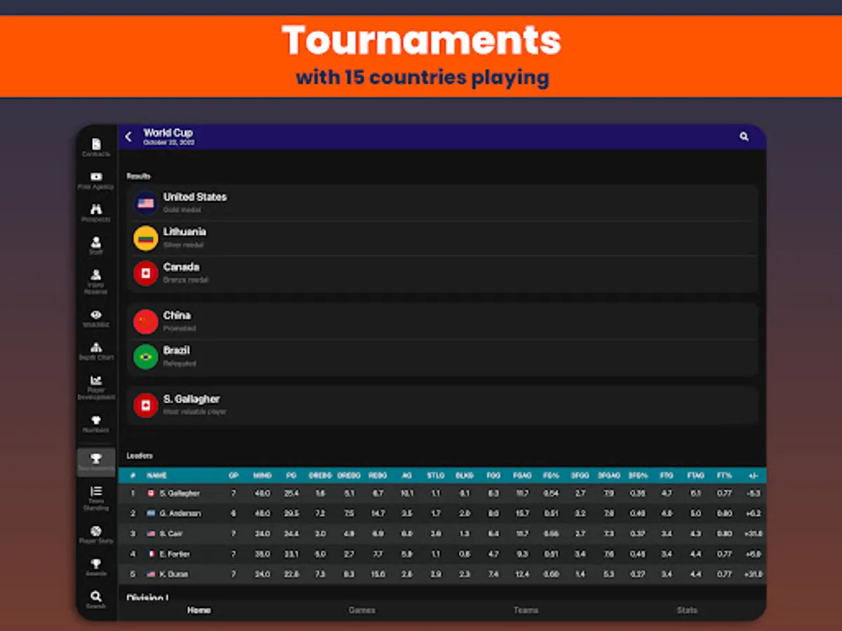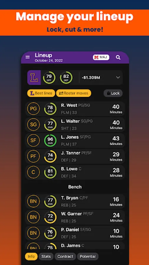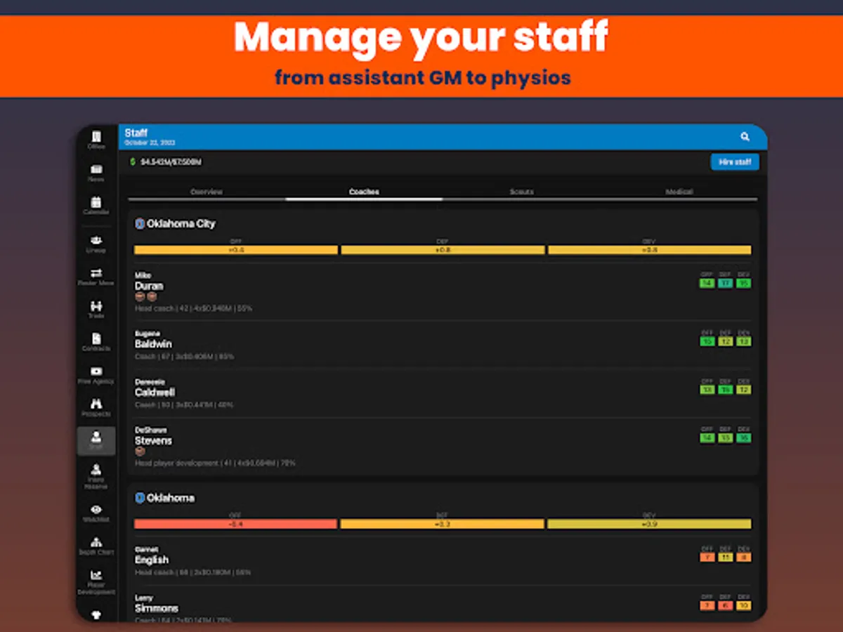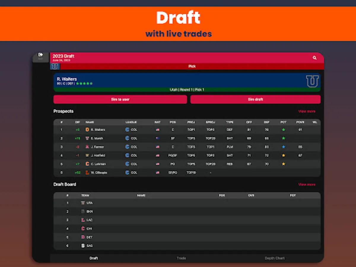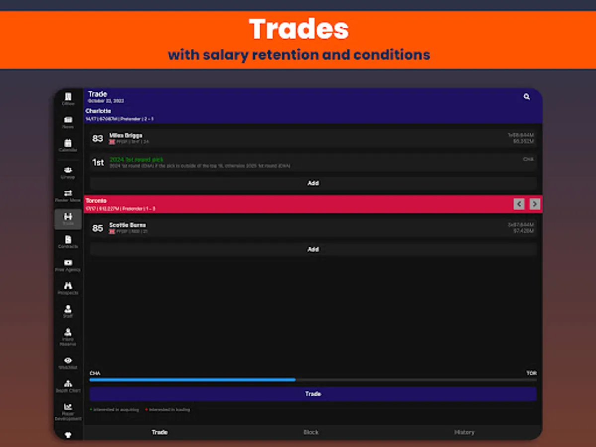 Basketball Legacy Manager 23 (BBLM23) is the ultimate mobile basketball manager experience. Manage all aspects of your basketball team to create the ultimate legacy. Coaches, scouts, drafting, trading, contract negotiations, player development, all this will help you dominate the league for decades.