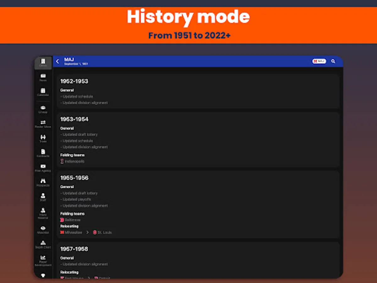 You can even start your career as far as 1951! You have full control over the league future with the help of expansion drafts!