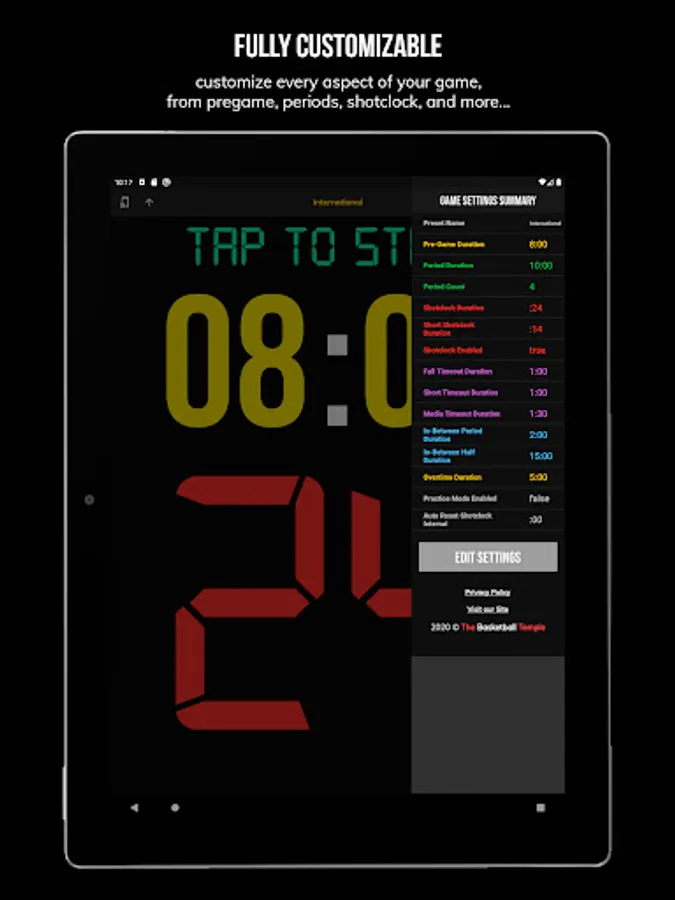 One of the cleanest shotclock apps on the market. The BT Shotclock app, developed by a basketball company that runs it's own basketball leagues, is the next best option to investing in an expensive professional grade shotclock. Shotclock and Scoreboard equipment which can cost you thousands is now available and affordable to everyone in the basketball community. Available on Android TV!
