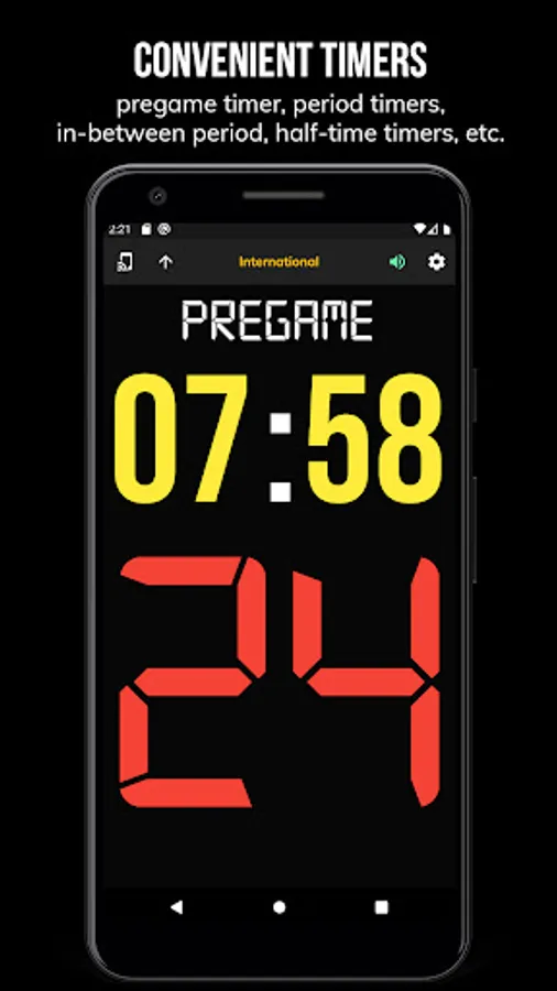 - Convenient timers: pregame timer, period timer, rest timer, timeout timer, overtime, etc.