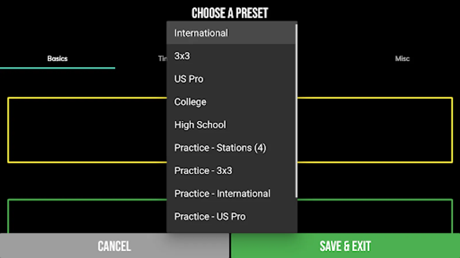 - Convenient Presets (International, 3x3, US Pro, College, High School, and more...)