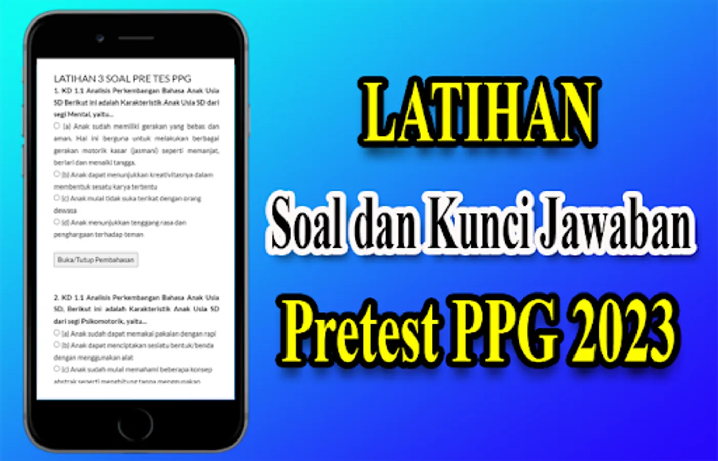 The 2023 Teacher Professional Education Questionnaire is an educational/educational application that contains the 2023 Teacher Professional Education Practice Questions and Teacher Competency Test questions and is equipped with answer keys to these questions along with discussion. So that it will make it easier for ladies and gentlemen to learn this application.