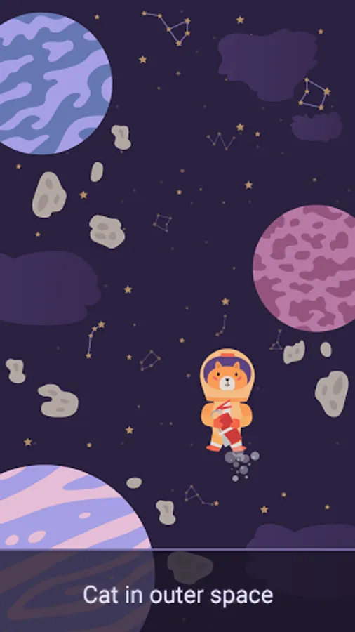 Astronaut cat travels in outer space using a fire extinguisher, help him fly around meteorites and mysterious planets to get to his goal, breathtaking atmosphere, beautiful graphics and a pleasant soundtrack will not leave you indifferent