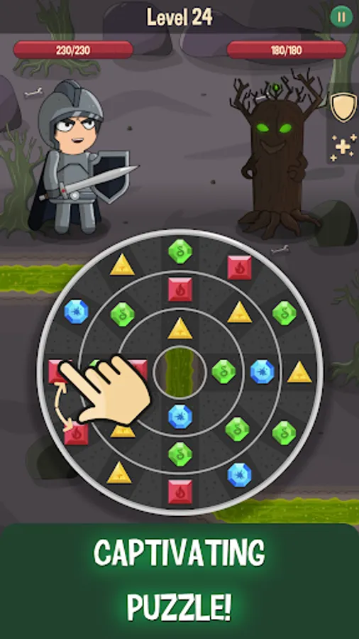 Move forward in this fantastic match 3 adventure! Defeat enemies, get rewards, improve your character, enjoy the gameplay.