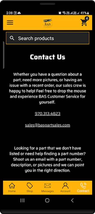 The BAS Part Sales app offers easy searching and quick ordering for new, used, salvaged, and new-old stock aviation parts for piston engine and turbine engine aircraft from brands such as Cessna, Learjet, Piper, Robinson, Cirrus, Mooney, Jetstream, Mitsubishi, Beechcraft, Beechjet, JetStar and many more. Easily search over 60,000 aviation parts for sale by part number, make, model, and more. Or browse our detailed catalog and always find the pictures, part numbers, and details you need to keep you out of the hangar and in the clouds. Shop our entire inventory and order aircraft parts directly from the app. BAS Part Sales is the internet’s best aircraft salvage yard with 2 locations in the US totaling more than 150,000 sq ft of warehouse and 180 acres of salvage yard covering nearly every make and model of general aviation, turbine, and business jet aircraft.