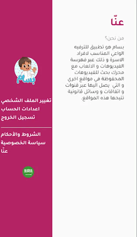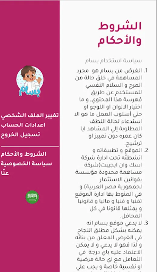 The purpose of Bassam is merely to contribute to creating a state of fun and psychological peace for the user by indexing this content, and choosing colors, logos, or even the work style is nothing but a call to the required state of kindness to the viewer, regardless of his age, without discrimination or nomination.