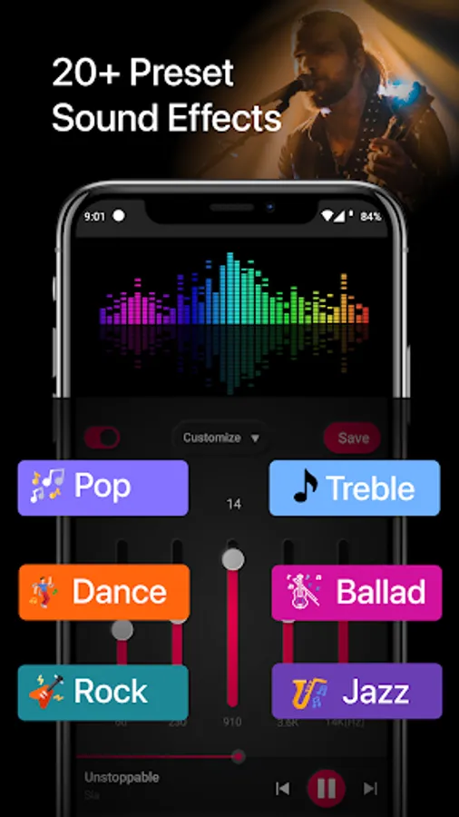 Download “Music Equalizer - Bass Booster” app now and make your phone a better audio player tool!