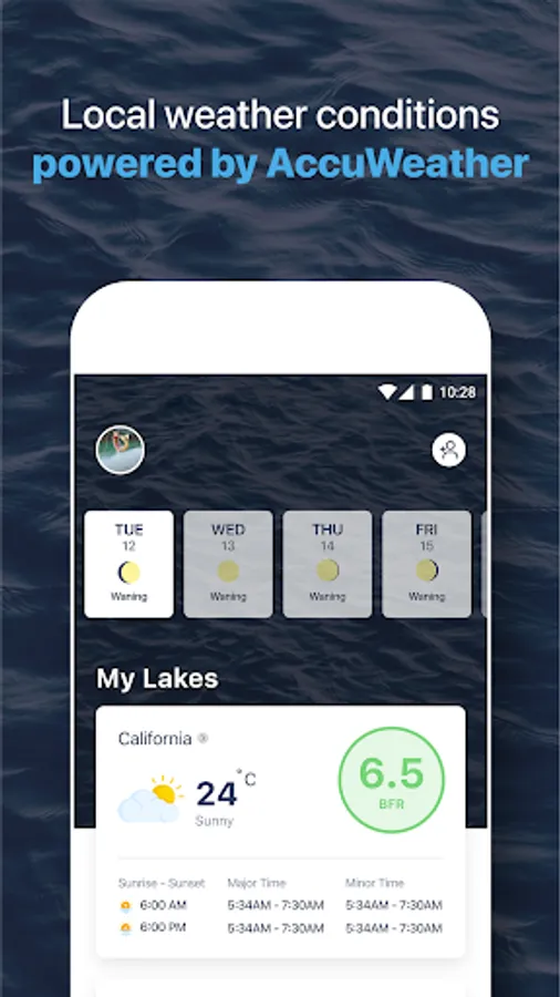 • Push Notifications of “Good” and “Epic” days to Bass fish 10 days in advance