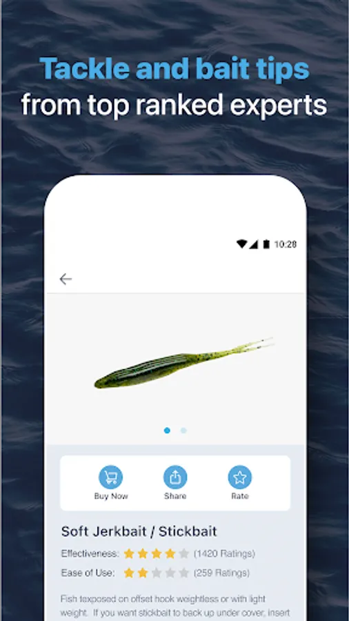 • Store catch data, location, rating, pictures, dates and conditions in the Catch Log, which can be shared or kept private