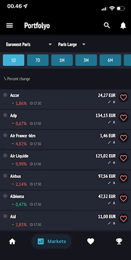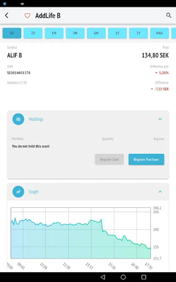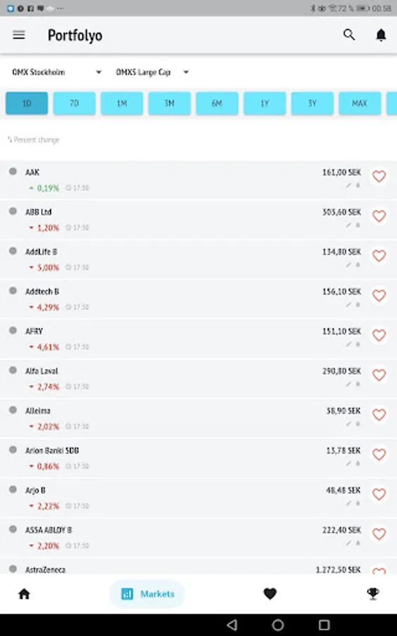 The app offers a (very affordable) subscription for complete access to all features. Additionally, you can choose to use the app for free in a slightly limited version (with ads, only one portfolio, and a maximum of two active alarms). You begin with a completely free one-week trial - no credit card required, no strings attached.