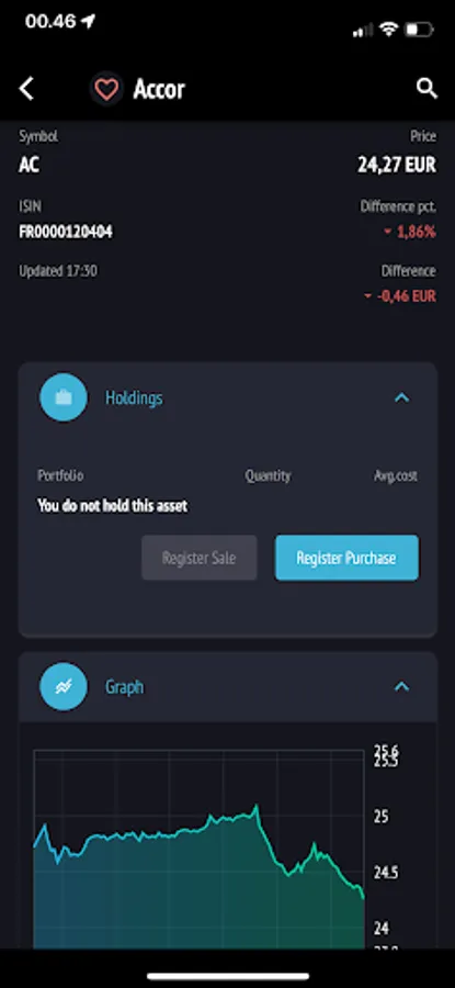 While your bank's app offers a simple summary of your portfolio's present value, it doesn't monitor its performance over time or factor in gains/losses from sales of stocks, currency exchange, and expenses. However, the Portfolyo app provides these features and more with minimal effort required to register transactions. You can also include additional information such as yields, fees, and taxes for a comprehensive view to enhance your trading.