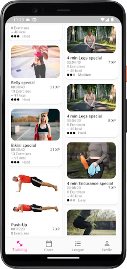 * Select between more than 30 different exercises, that were specially selected for female bodies by sports scientists and sports medics.