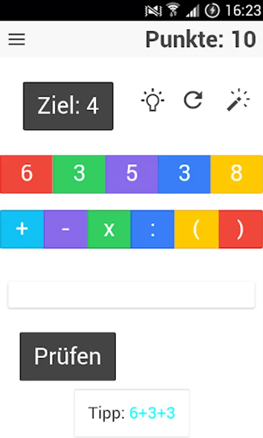 Use every number and every basic arithmetical operation exactly once to come on the result. Clips may be put arbitrarily.