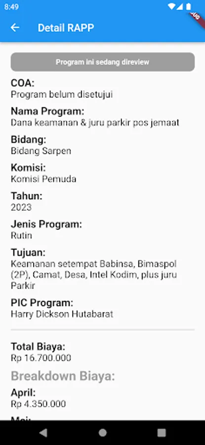 Created to be able to assist in the financial monitoring activities of fields and commissions within the scope of GKI Grand Wisata