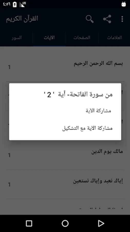 - To share any verse, keep holding on it until you see a message to share.
