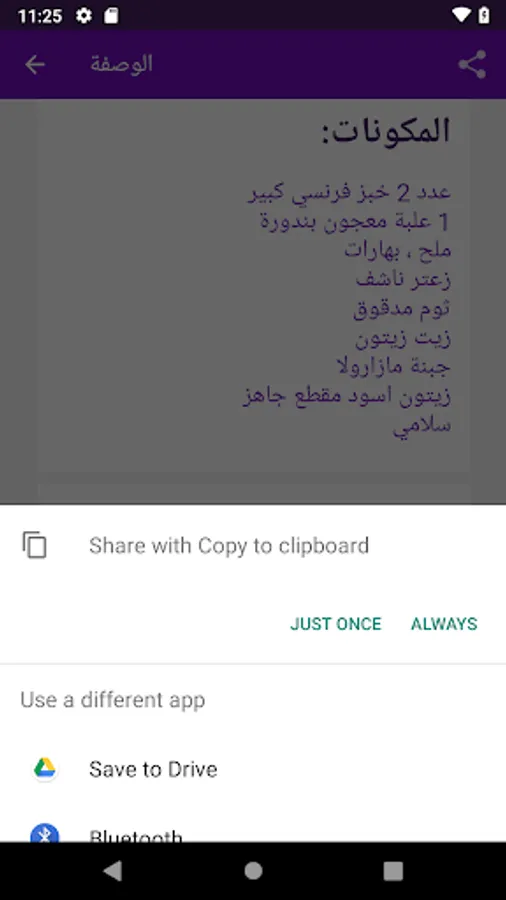 6. The recipe can be shared with your friends and relatives via (whatsApp and bluetooth, imo, messenger, instagram, snapchat, twitter, facebook and other programs