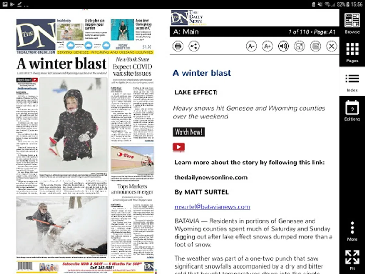Subscribers can access all the sections, articles, photos and advertisements in the Batavia Daily News exactly as they appear in print on their Android tablet. Subscribers also have access to the e-edition on computers and mobile devices. Subscribers also can access: