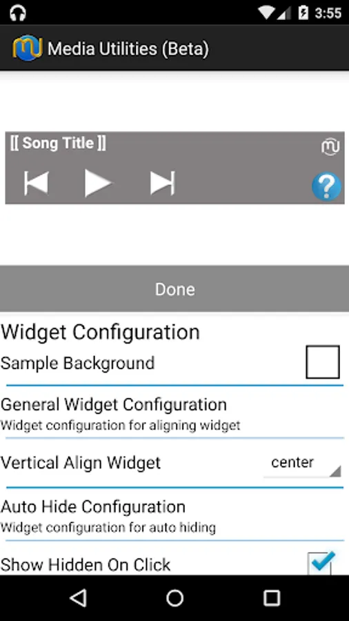 Media Utilities NOT a music player but a collection of widgets, notifications and tasker plugins that works with your media players. Media Utilities automatically determines your current music application and integrates with it providing seamless integration to simplify your life.