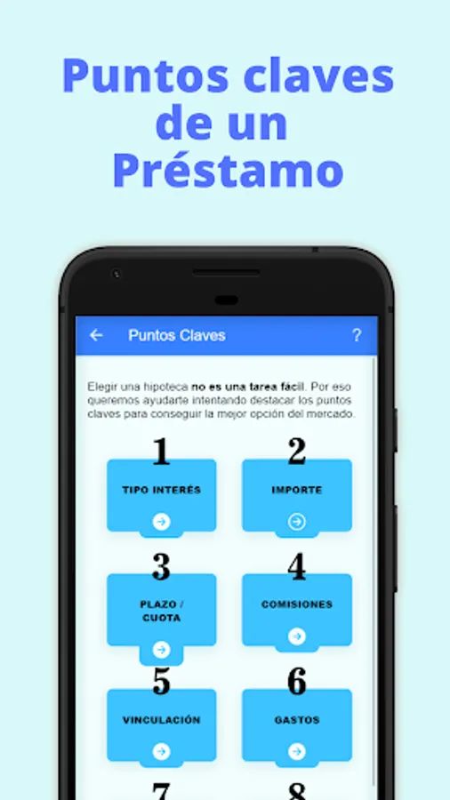 This APP is a guide to be able to choose the best mortgage or home loan with certain criteria.