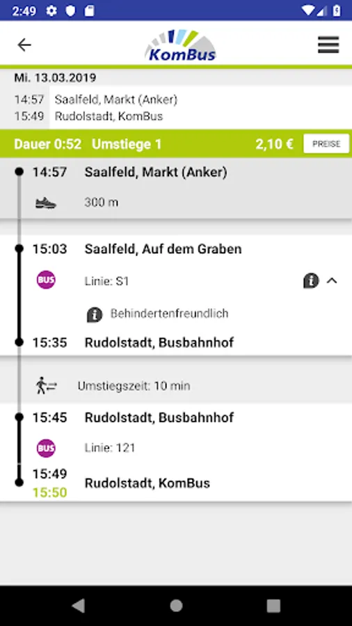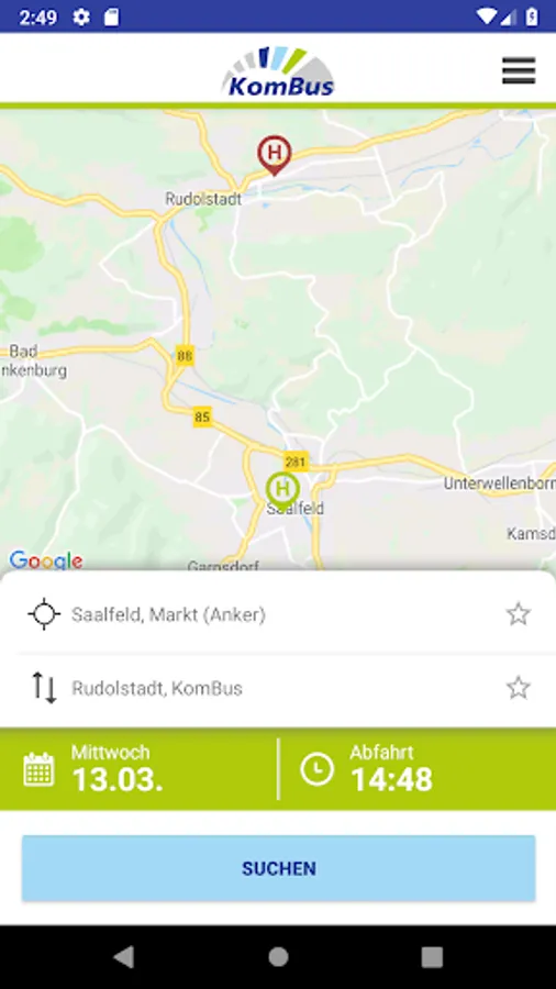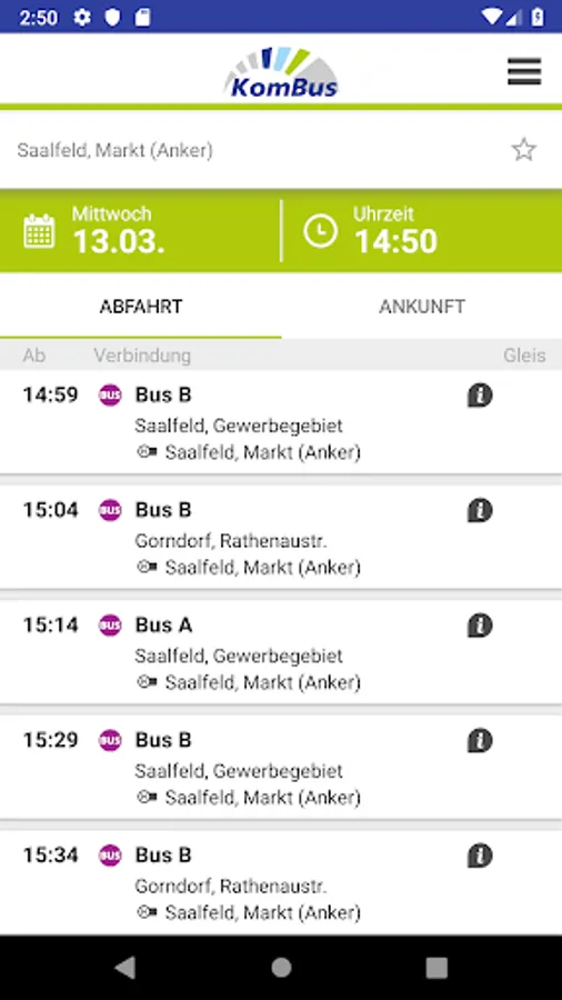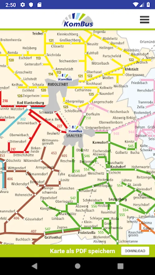 With the KomBus app, you always have your personal timetable information with you. With its ergonomic user interface and intuitive operation, the app offers you maximum convenience. You can also access information about current departure times, timetables and fares on the go.