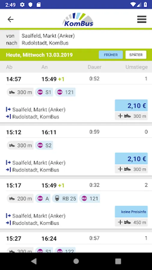 Search for Germany-wide connections for bus, train, tram or long-distance traffic. In addition, an address input with display of footpaths and navigation is possible.