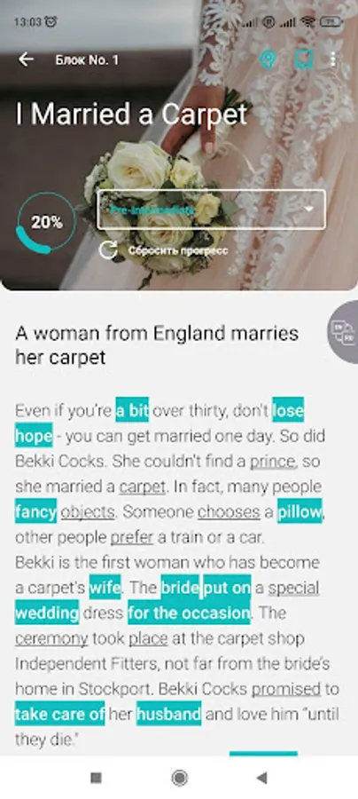 For Pre-Intermediate level, the underlined words are translated to your native language, while the words for Intermediate and Advanced levels have their dictionary definitions in English. This will help you fully immerse yourself in the language.