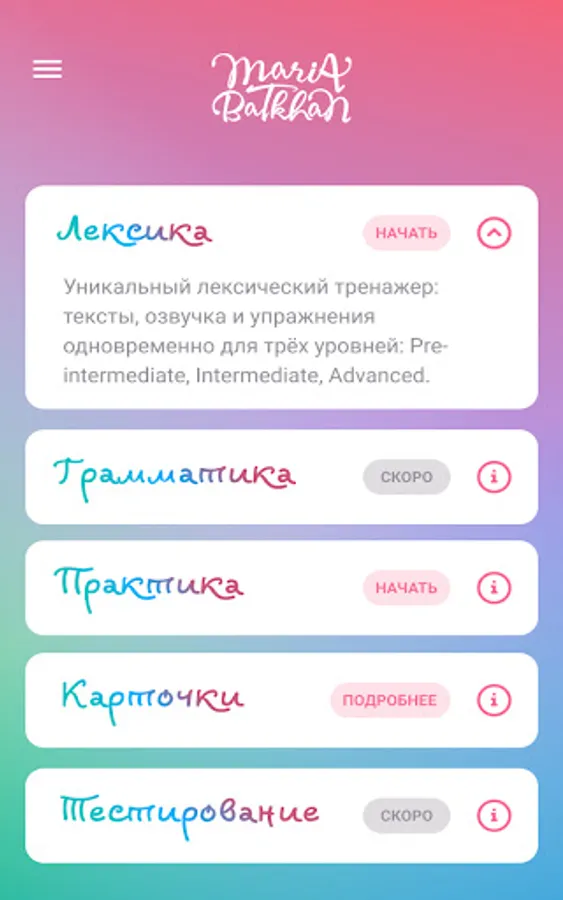 The vocabulary trainer "Lexy" is approved by cognitive science experts at the Higher School of Economics as a platform that is designed according to all the laws of human attention and memory.