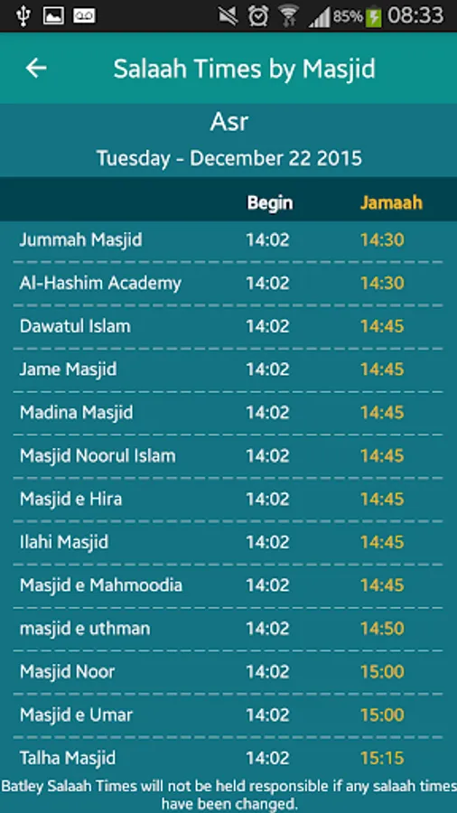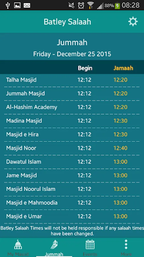· Search Prayer times for Masajid in Batley